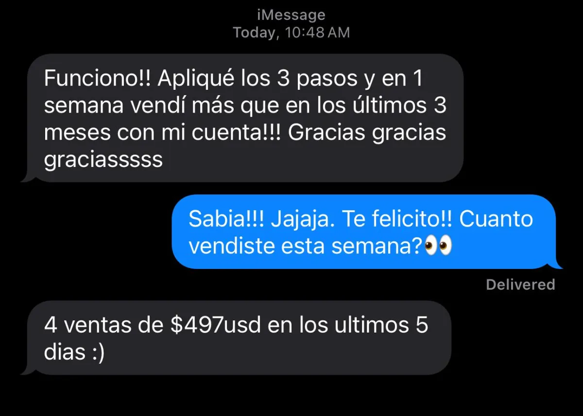 Después de decenas de iteraciones, comencé a crear un sistema paso a paso que tomó TODO lo que había aprendido por los mayores vendedores en redes sociales del mundo, y de mis propias experiencias...
